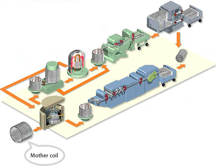 This process is to do sizing of steel diameter and improve the mechanical property through the Cold drawning.
